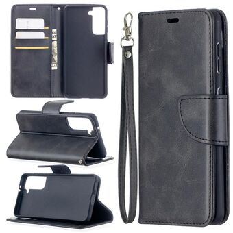 For Samsung Galaxy S21 5G Lambskin Texture Pure Color Horizontal Flip PU Leather Case with Holder & Card Slots & Wallet & Lanyard(Black)