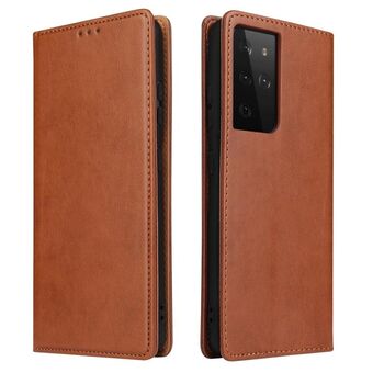 For Samsung Galaxy S21 Ultra 5G Fierre Shann PU Genuine Leather Texture Horizontal Flip Leather Case with Holder & Card Slots & Wallet(Brown) (FIERRE SHANN)