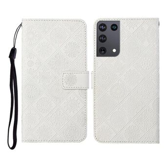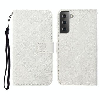 For Samsung Galaxy S21+ 5G Ethnic Style Embossed Pattern Horizontal Flip Leather Case with Holder & Card Slots & Wallet & Lanyard(White)