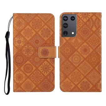 For Samsung Galaxy S21Ultra 5G Ethnic Style Embossed Pattern Horizontal Flip Leather Case with Holder & Card Slots & Wallet & Lanyard(Brown)