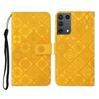 For Samsung Galaxy S21Ultra 5G Ethnic Style Embossed Pattern Horizontal Flip Leather Case with Holder & Card Slots & Wallet & Lanyard(Yellow)