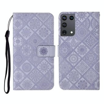 For Samsung Galaxy S21Ultra 5G Ethnic Style Embossed Pattern Horizontal Flip Leather Case with Holder & Card Slots & Wallet & Lanyard(Purple)