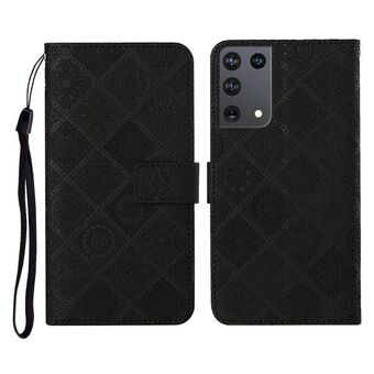 For Samsung Galaxy S21+ 5G Ethnic Style Embossed Pattern Horizontal Flip Leather Case with Holder & Card Slots & Wallet & Lanyard(Black)