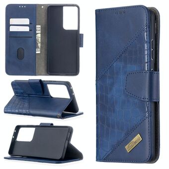 For Samsung Galaxy S21 Ultra 5G Matching Color Crocodile Texture Horizontal Flip PU Leather Case with Wallet & Holder & Card Slots(Blue)