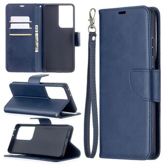 For Samsung Galaxy S21 Ultra 5G Lambskin Texture Pure Color Horizontal Flip PU Leather Case with Holder & Card Slots & Wallet & Lanyard(Blue)