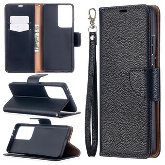 For Samsung Galaxy S21 Ultra 5G Litchi Texture Pure Color Horizontal Flip Leather Case with Holder & Card Slots & Wallet & Lanyard(Black)
