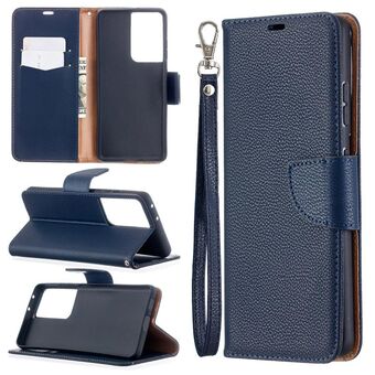 For Samsung Galaxy S21 Ultra 5G Litchi Texture Pure Color Horizontal Flip Leather Case with Holder & Card Slots & Wallet & Lanyard(Dark Blue)