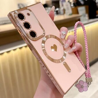 For Samsung Galaxy S22+ 5G Pupil Side Heart MagSafe Electroplating Phone Case with Lanyard(Pink)