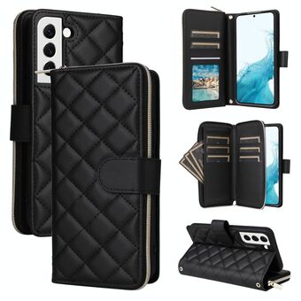 For Samsung Galaxy S22 5G Crossbody Rhombic Zipper Tower Buckle Leather Phone Case with Lanyard(Black)