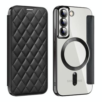 For Samsung Galaxy S22 5G Shield MagSafe RFID Anti-theft Rhombus Leather Phone Case(Black)
