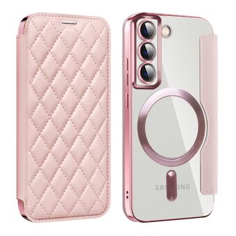 For Samsung Galaxy S22 5G Shield MagSafe RFID Anti-theft Rhombus Leather Phone Case(Pink)