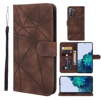 For Samsung Galaxy S22 5G Skin Feel Geometric Lines Leather Phone Case(Brown)