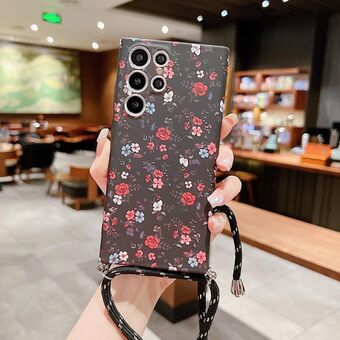 For Samsung Galaxy S22 5G Small Floral Lanyard Phone Case(Black Red Flower)