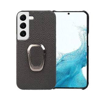 For Samsung Galaxy S22 5G Ring Holder Litchi Texture Genuine Leather Phone Case(Black)