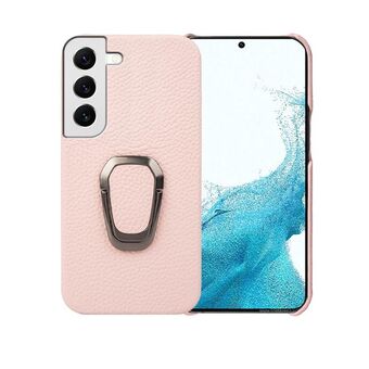 For Samsung Galaxy S22 5G Ring Holder Litchi Texture Genuine Leather Phone Case(Pink)