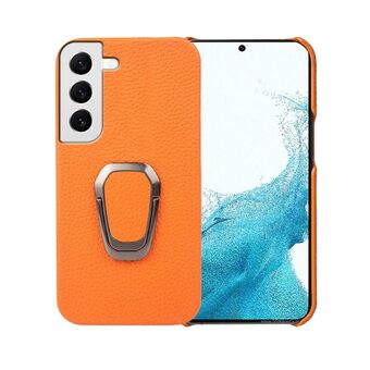 For Samsung Galaxy S22 5G Ring Holder Litchi Texture Genuine Leather Phone Case(Yellow)