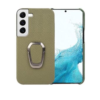 For Samsung Galaxy S22 5G Ring Holder Litchi Texture Genuine Leather Phone Case(Green)