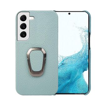 For Samsung Galaxy S22 5G Ring Holder Litchi Texture Genuine Leather Phone Case(Cyan)