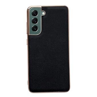 For Samsung Galaxy S22 5G Genuine Leather Weilai Series Nano Electroplating Phone Case(Black)