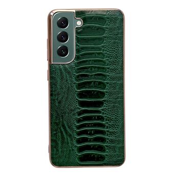 For Samsung Galaxy S22 5G Genuine Leather Ostrich Texture Series Nano Electroplating Phone Case(Green)