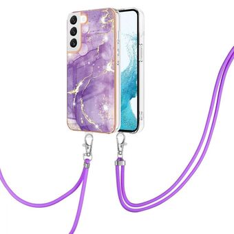 For Samsung Galaxy S22 5G Electroplating Marble IMD TPU Phone Case with Lanyard(Purple 001)