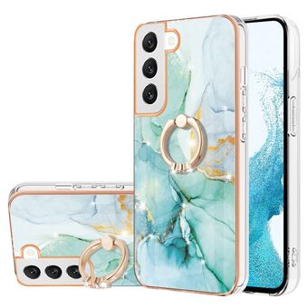 For Samsung Galaxy S22 Electroplating Marble IMD TPU Phone Case with Ring Holder(Green 004)