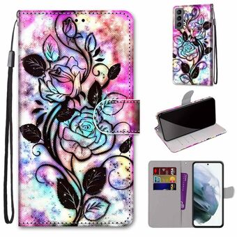 For Samsung Galaxy S22 5G Coloured Drawing Cross Texture Horizontal Flip Leather Phone Case with Holder & Card Slots & Wallet & Lanyard(Wild Rose)