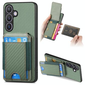 For Samsung Galaxy S22 5G Carbon Fiber Vertical Flip Wallet Stand Phone Case(Green)