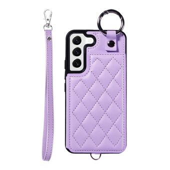 For Samsung Galaxy S22 5G Rhombic Texture Card Bag Phone Case with Short Lanyard(Purple)