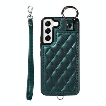 For Samsung Galaxy S22 5G Rhombic Texture Card Bag Phone Case with Short Lanyard(Green)