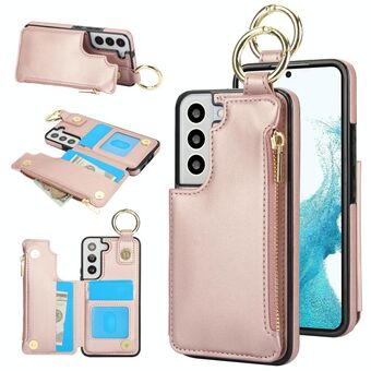 For Samsung Galaxy S22 5G Wristband Holder Zipper Purse RFID Leather Phone Case(Rose Gold)