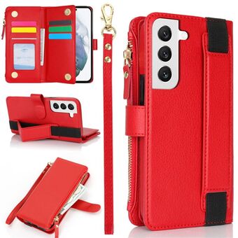 For Samsung Galaxy S22 5G Wristband Holder Zipper Purse RFID Leather Phone Case(Red)