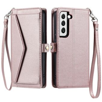 For Samsung Galaxy S22 5G Wallet Multi-card Slot Leather Phone Case with Lanyard(Rose Gold)