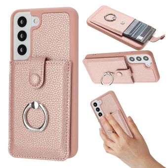 For Samsung Galaxy S22 5G Litchi Texture Drawing Card Bag Ring Holder Phone Case(Rose Gold)