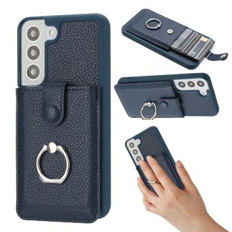 For Samsung Galaxy S22 5G Litchi Texture Drawing Card Bag Ring Holder Phone Case(Blue)