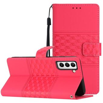 For Samsung Galaxy S22 5G Diamond Embossed Skin Feel Leather Phone Case with Lanyard(Red)
