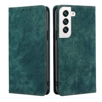 For Samsung Galaxy S22 5G RFID Anti-theft Brush Magnetic Leather Phone Case(Green)
