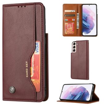 Για Samsung Galaxy S22 5G Retro υφή μαγνητική κάρτα κάτοχος δερμάτινη θήκη (καφέ)