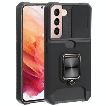 Για Samsung Galaxy S22 5G συρόμενη κάμερα Cover Design PC + TPU Shockproof τηλέφωνο υπόθεση με θήκη δαχτυλίδι & υποδοχή κάρτας (μαύρο)