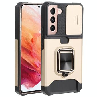 Για Samsung Galaxy S22 5G συρόμενη κάμερα Cover Design PC + TPU Shockproof τηλέφωνο υπόθεση με θήκη δαχτυλίδι & υποδοχή κάρτας (χρυσό)