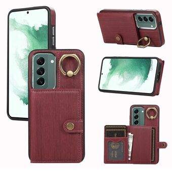 For Samsung Galaxy Galaxy S22+ 5G Brushed Texture Wallet Ring Holder Phone Case(Dark Red)