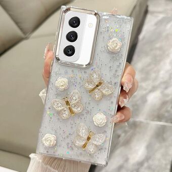 Θήκη τηλεφώνου TPU με τρισδιάστατη πεταλούδα και γκλίτερ για Samsung Galaxy S22+ 5G (Χρυσό)