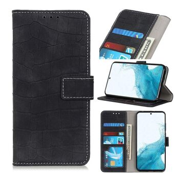 Θήκη Samsung Galaxy S22+ 5G οριζόντια, τύπου flip, από PU δέρμα με υφή κροκόδειλου, μαγνητικό κούμπωμα, με βάση στήριξης & θήκες για κάρτες & πορτοφόλι (Μαύρο)