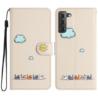 Θήκη τηλεφώνου Samsung Galaxy S22+ 5G από δέρμα με σχέδια χαριτωμένων γατών (Μπεζ Λευκό)
