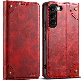 Θήκη τηλεφώνου δερμάτινη με υφή μοσχαρίσιου δέρματος Baroque και αγκράφα για Samsung Galaxy S22+ 5G (Κόκκινη) (Suteni)