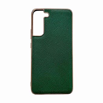 Θήκη τηλεφώνου από γνήσιο δέρμα με σταυρωτή υφή και νανο-επίχρυση για Samsung Galaxy S22+ 5G (Πράσινο)