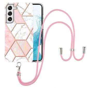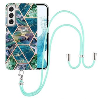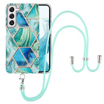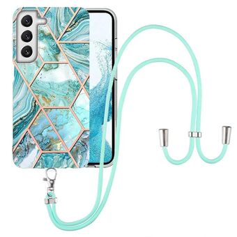 Θήκη τηλεφώνου TPU με γαλβανισμό και μαρμάρινη σύνθεση για Samsung Galaxy S22+ 5G με κορδόνι (Ανοιχτό Μωβ)