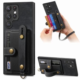 For Samsung Galaxy S22 Ultra 5G Retro Cross Wristband Wallet Leather Back Phone Case(Black)