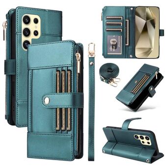 For Samsung Galaxy S22 Ultra 5G Crossbody Strap RFID Blocking Zipper Wallet Leather Phone Case(Green)