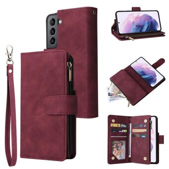 Για Samsung Galaxy S22 + 5G Πολυλειτουργικό παγωμένο φερμουάρ πορτοφόλι δερμάτινη θήκη τηλεφώνου (κόκκινο κρασί)
